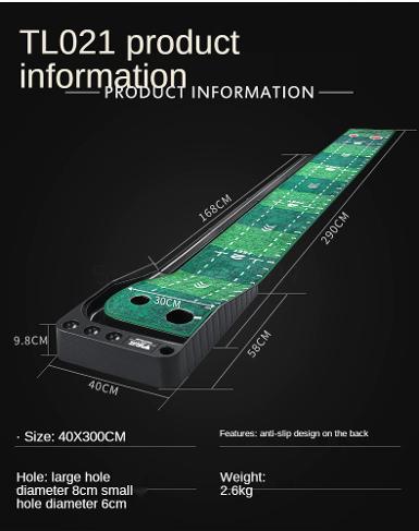PGM TL029 putting mat green automatic ball return Golf Putting Practice Size: 35*300cm Weight:2.2/2.5kg Color: Green+ Black การคืนลูกไฟฟ้า กอล์ฟหลุมใหญ่ และหลุมเล็กสามารถกลับลูกโดยอัตโนมัติ มีเส้นเล้งยาว+ หลา ปรับปรุงความแม่นของลูกกอล์ฟ การออกแบบฟั
